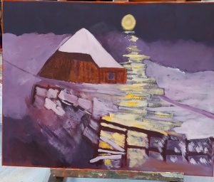 The subject of this workshop was “Landscapes in the Mediums of Acrylics or Oils. We had a fantastic full house of twelve members enjoying their day and the results even though not finished looked amazing.